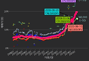 - 하단에 이어지는 거래량 막대차트(bar chart)와 함께 비교해보는 것이 좋습니다.