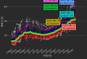 - 하단에 이어지는 거래량 막대차트(bar chart)와 함께 비교해보는 것이 좋습니다.