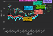 - 하단에 이어지는 거래량 막대차트(bar chart)와 함께 비교해보는 것이 좋습니다.