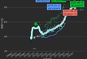 - 하단에 이어지는 거래량 막대차트(bar chart)와 함께 비교해보는 것이 좋습니다.