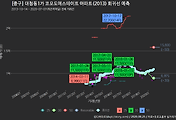 - 하단에 이어지는 거래량 막대차트(bar chart)와 함께 비교해보는 것이 좋습니다.