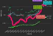 - 하단에 이어지는 거래량 막대차트(bar chart)와 함께 비교해보는 것이 좋습니다.