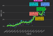 - 하단에 이어지는 거래량 막대차트(bar chart)와 함께 비교해보는 것이 좋습니다.