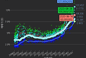 - 하단에 이어지는 거래량 막대차트(bar chart)와 함께 비교해보는 것이 좋습니다.