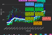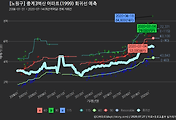 - 하단에 이어지는 거래량 막대차트(bar chart)와 함께 비교해보는 것이 좋습니다.