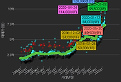 - 하단에 이어지는 거래량 막대차트(bar chart)와 함께 비교해보는 것이 좋습니다.