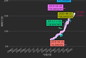 - 하단에 이어지는 거래량 막대차트(bar chart)와 함께 비교해보는 것이 좋습니다.