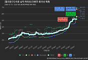 - 하단에 이어지는 거래량 막대차트(bar chart)와 함께 비교해보는 것이 좋습니다.