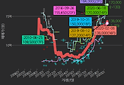 - 하단에 이어지는 거래량 막대차트(bar chart)와 함께 비교해보는 것이 좋습니다.