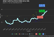 - 하단에 이어지는 거래량 막대차트(bar chart)와 함께 비교해보는 것이 좋습니다.