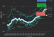 - 하단에 이어지는 거래량 막대차트(bar chart)와 함께 비교해보는 것이 좋습니다.