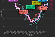- 하단에 이어지는 거래량 막대차트(bar chart)와 함께 비교해보는 것이 좋습니다.