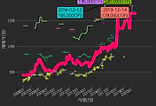 - 하단에 이어지는 거래량 막대차트(bar chart)와 함께 비교해보는 것이 좋습니다.