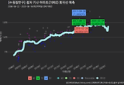 - 하단에 이어지는 거래량 막대차트(bar chart)와 함께 비교해보는 것이 좋습니다.
