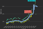- 하단에 이어지는 거래량 막대차트(bar chart)와 함께 비교해보는 것이 좋습니다.
