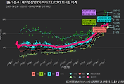 - 하단에 이어지는 거래량 막대차트(bar chart)와 함께 비교해보는 것이 좋습니다.