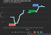 - 하단에 이어지는 거래량 막대차트(bar chart)와 함께 비교해보는 것이 좋습니다.