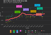 - 하단에 이어지는 거래량 막대차트(bar chart)와 함께 비교해보는 것이 좋습니다.