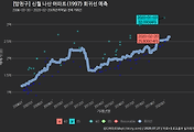 - 하단에 이어지는 거래량 막대차트(bar chart)와 함께 비교해보는 것이 좋습니다.