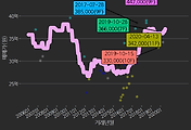 - 하단에 이어지는 거래량 막대차트(bar chart)와 함께 비교해보는 것이 좋습니다.