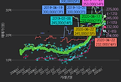 - 하단에 이어지는 거래량 막대차트(bar chart)와 함께 비교해보는 것이 좋습니다.