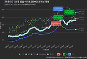 - 하단에 이어지는 거래량 막대차트(bar chart)와 함께 비교해보는 것이 좋습니다.