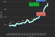 - 하단에 이어지는 거래량 막대차트(bar chart)와 함께 비교해보는 것이 좋습니다.