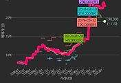 - 하단에 이어지는 거래량 막대차트(bar chart)와 함께 비교해보는 것이 좋습니다.