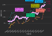 - 하단에 이어지는 거래량 막대차트(bar chart)와 함께 비교해보는 것이 좋습니다.