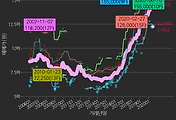 - 하단에 이어지는 거래량 막대차트(bar chart)와 함께 비교해보는 것이 좋습니다.