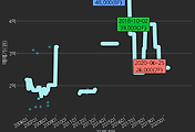- 하단에 이어지는 거래량 막대차트(bar chart)와 함께 비교해보는 것이 좋습니다.