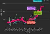 - 하단에 이어지는 거래량 막대차트(bar chart)와 함께 비교해보는 것이 좋습니다.