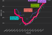 - 하단에 이어지는 거래량 막대차트(bar chart)와 함께 비교해보는 것이 좋습니다.