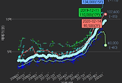 - 하단에 이어지는 거래량 막대차트(bar chart)와 함께 비교해보는 것이 좋습니다.