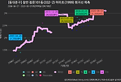 - 하단에 이어지는 거래량 막대차트(bar chart)와 함께 비교해보는 것이 좋습니다.