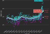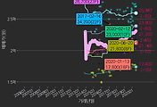 - 하단에 이어지는 거래량 막대차트(bar chart)와 함께 비교해보는 것이 좋습니다.