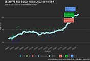 - 하단에 이어지는 거래량 막대차트(bar chart)와 함께 비교해보는 것이 좋습니다.
