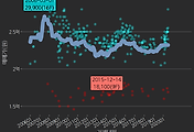 - 하단에 이어지는 거래량 막대차트(bar chart)와 함께 비교해보는 것이 좋습니다.