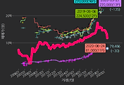 - 하단에 이어지는 거래량 막대차트(bar chart)와 함께 비교해보는 것이 좋습니다.