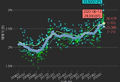 - 하단에 이어지는 거래량 막대차트(bar chart)와 함께 비교해보는 것이 좋습니다.