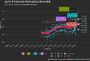 - 하단에 이어지는 거래량 막대차트(bar chart)와 함께 비교해보는 것이 좋습니다.