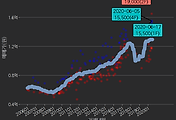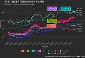 - 하단에 이어지는 거래량 막대차트(bar chart)와 함께 비교해보는 것이 좋습니다.