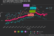- 하단에 이어지는 거래량 막대차트(bar chart)와 함께 비교해보는 것이 좋습니다.