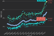 - 하단에 이어지는 거래량 막대차트(bar chart)와 함께 비교해보는 것이 좋습니다.