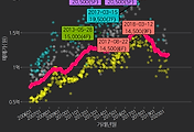 - 하단에 이어지는 거래량 막대차트(bar chart)와 함께 비교해보는 것이 좋습니다.