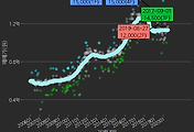 - 하단에 이어지는 거래량 막대차트(bar chart)와 함께 비교해보는 것이 좋습니다.