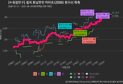 - 하단에 이어지는 거래량 막대차트(bar chart)와 함께 비교해보는 것이 좋습니다.