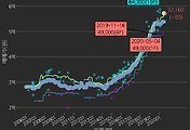 - 하단에 이어지는 거래량 막대차트(bar chart)와 함께 비교해보는 것이 좋습니다.
