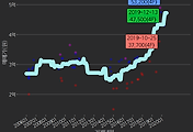 - 하단에 이어지는 거래량 막대차트(bar chart)와 함께 비교해보는 것이 좋습니다.