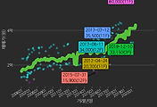 - 하단에 이어지는 거래량 막대차트(bar chart)와 함께 비교해보는 것이 좋습니다.